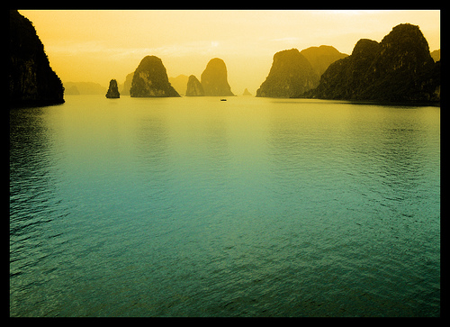 Hạ Long Bay is located in northeastern Vietnam. The bay has a 120 km long coastline and is approximately 1,553 km² in size with about 2,000 islets. The area designated by UNESCO as the World Natural Heritage Site incorporates 434 km² with 775 islets, of which the core zone is delimited by 69 points:
